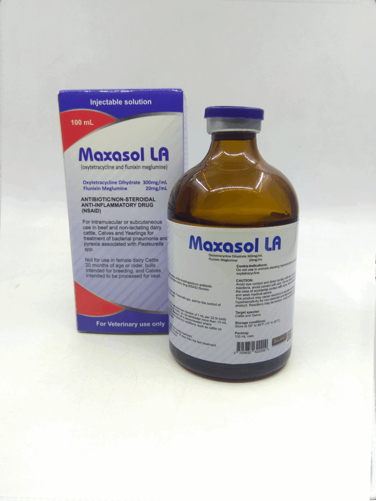 Maxasol LA Injection is a sterile, pre-constituted solution of the broad-spectrum antibiotic oxytetracycline dihydrate and the non-steroidal, anti-inflammatory drug (NSAID) flunixin meglumine.